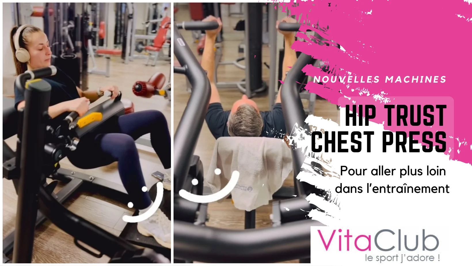 Deux équipements viennent récemment enrichir les plateaux des clubs VitaClub à Nice : une machine dédiée au Hip Thrust, ciblant les fessiers, et un développé incliné, pensé pour un travail précis des pectoraux. Deux ajouts qui parlent autant aux habitués qu’à ceux qui découvrent la musculation.